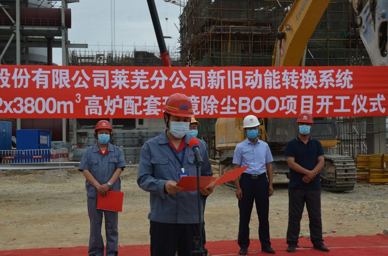 2020年6月16日,公司總承包的山鋼股份萊蕪分公司新舊動(dòng)能轉(zhuǎn)換升級(jí)改造2*3800m3高爐配套環(huán)境除塵BOO項(xiàng)目舉行了開(kāi)工儀式。萊蕪分公司新舊動(dòng)能轉(zhuǎn)換指揮部田慶元經(jīng)理、萊蕪三控冶金建設(shè)監(jiān)理事務(wù)所沈桂聯(lián)經(jīng)理、我公司劉洪亮副總經(jīng)理及其他相關(guān)單位領(lǐng)導(dǎo)出席了開(kāi)工儀式,劉洪亮副總在開(kāi)工儀式上講話,九點(diǎn)五十八分田慶元經(jīng)理宣布項(xiàng)目開(kāi)工。